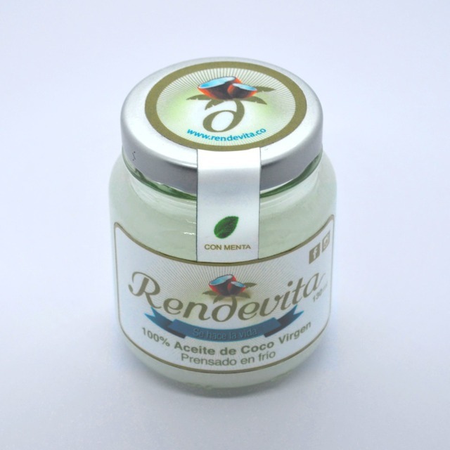 Aceite de coco Rendevita con adición de extracto de menta natural.